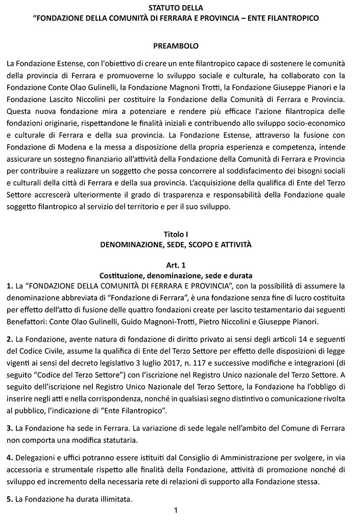 Nasce dalla fusione di quattro storiche fondazioni ferraresi create per lascito testamentario (Conte Olao Gulinelli, Guido Magnoni-Trotti, Pietro Niccolini e Giuseppe Pianori), e ha preso vita anche grazie al prezioso supporto di Fondazione Estense (oggi fusa in Fondazione di Modena), con l'obiettivo di potenziare l'azione filantropica a favore del territorio.